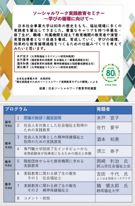 | ソーシャルワーク実践教育セミナー ~学びの循環に向けて~ | |||