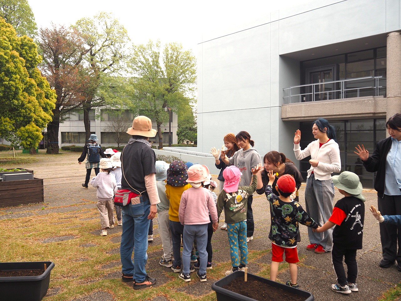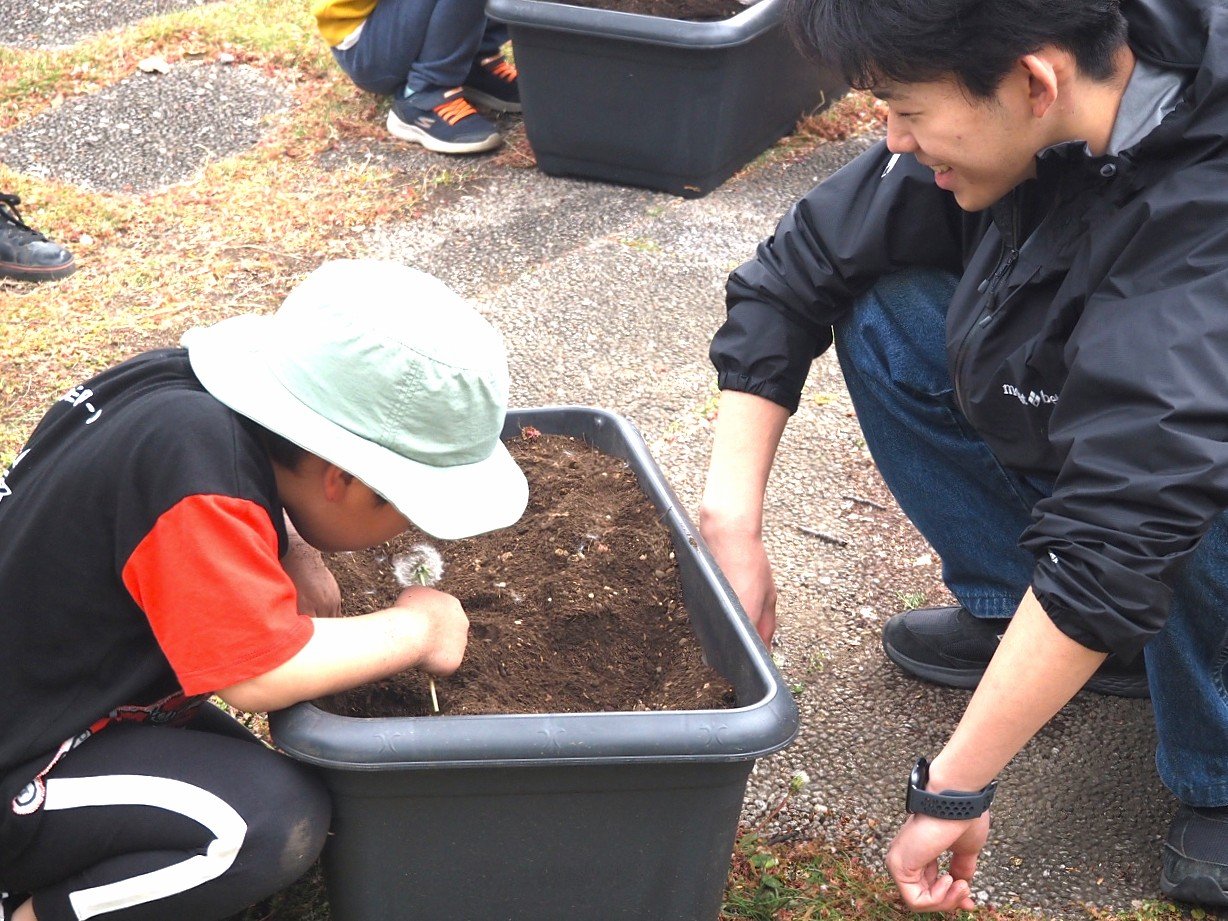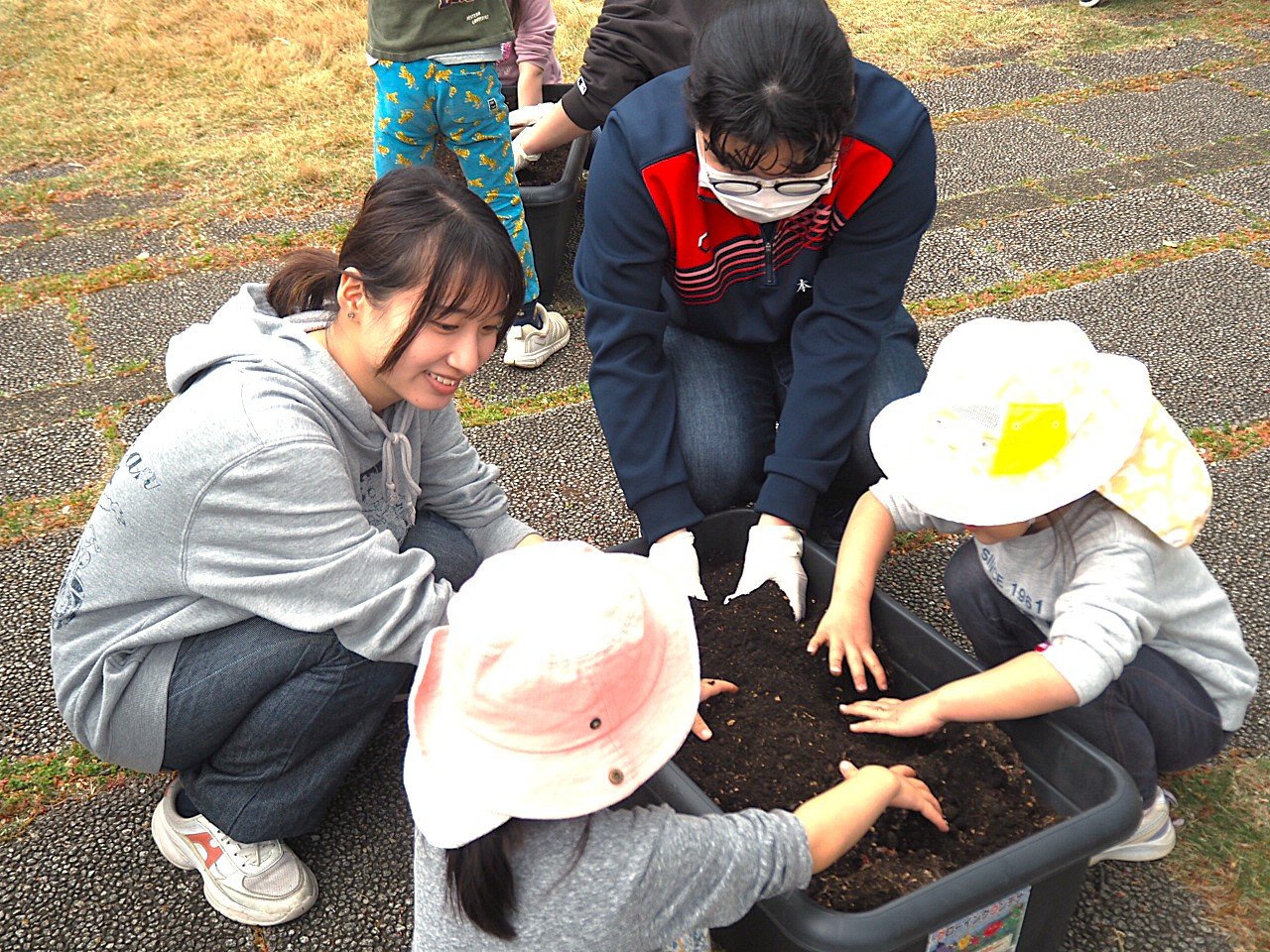 2026年4月10日(金)本学中庭において第1保育園の園児の皆さんと本学学生で、じゃがいもの植え付けを行いました。